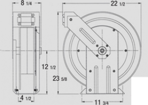 - Reel arms can be adjusted to mount the reel on the ceiling, wall or truck.