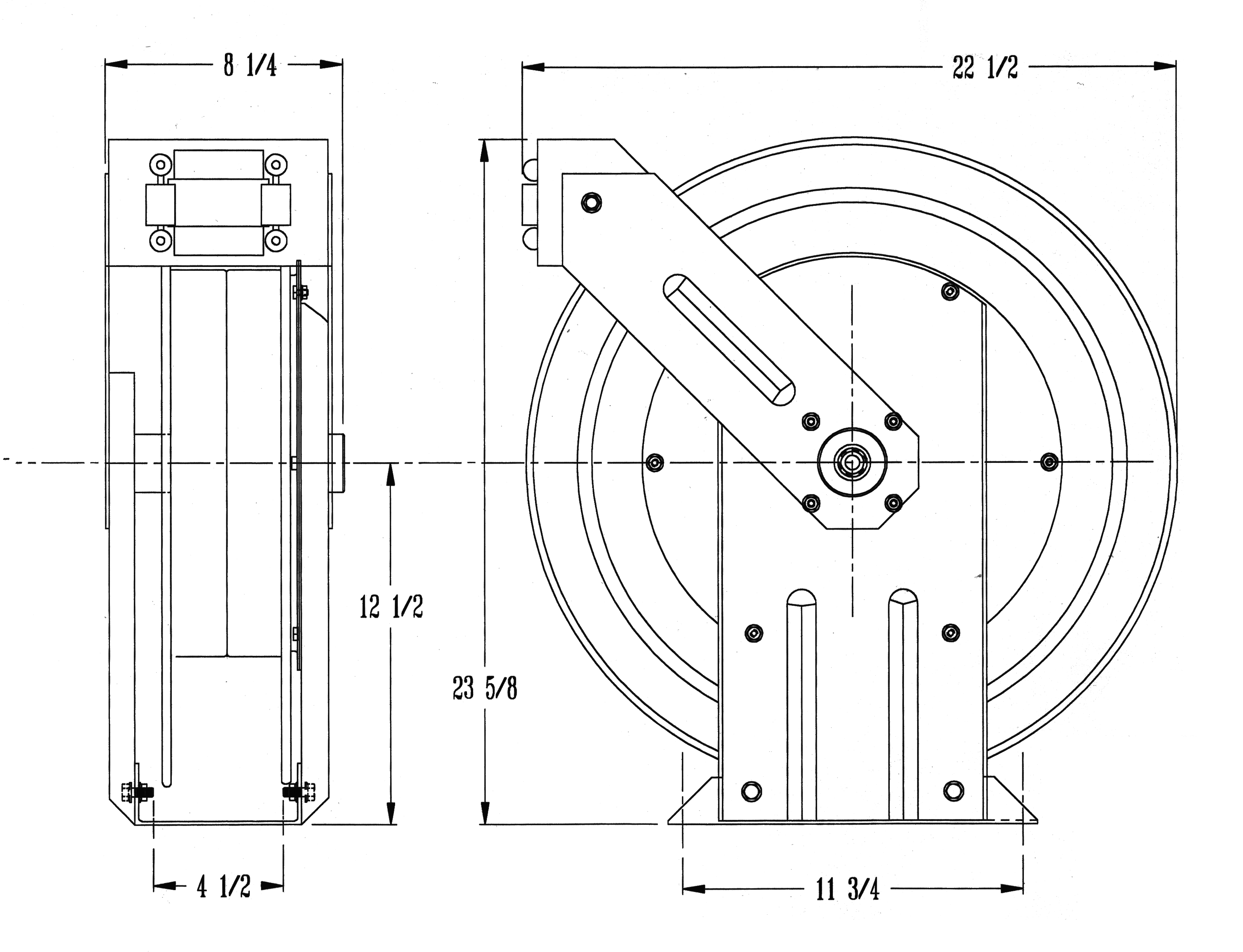- 4 mounting slots in 11 gauge steel for easy and sturdy hose reel mounting.